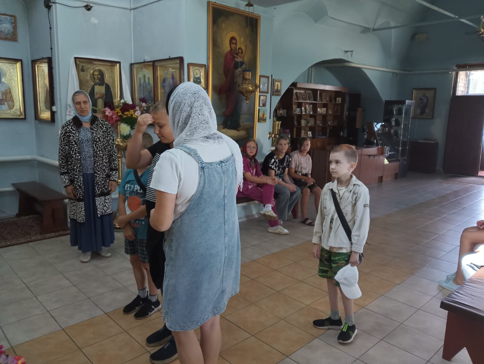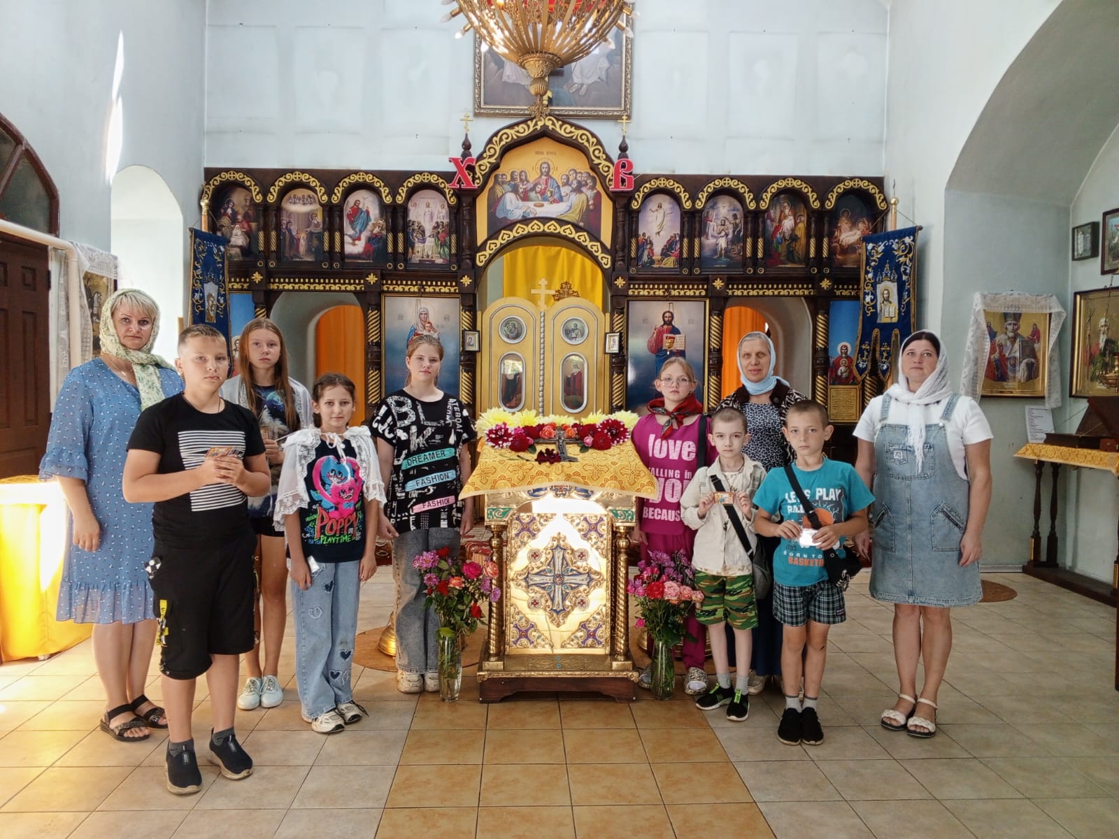 Сегодня был организован поход в храм иконы Божией матери «Знамение», где ребята смогли познакомиться с традициями августовских православных праздников.