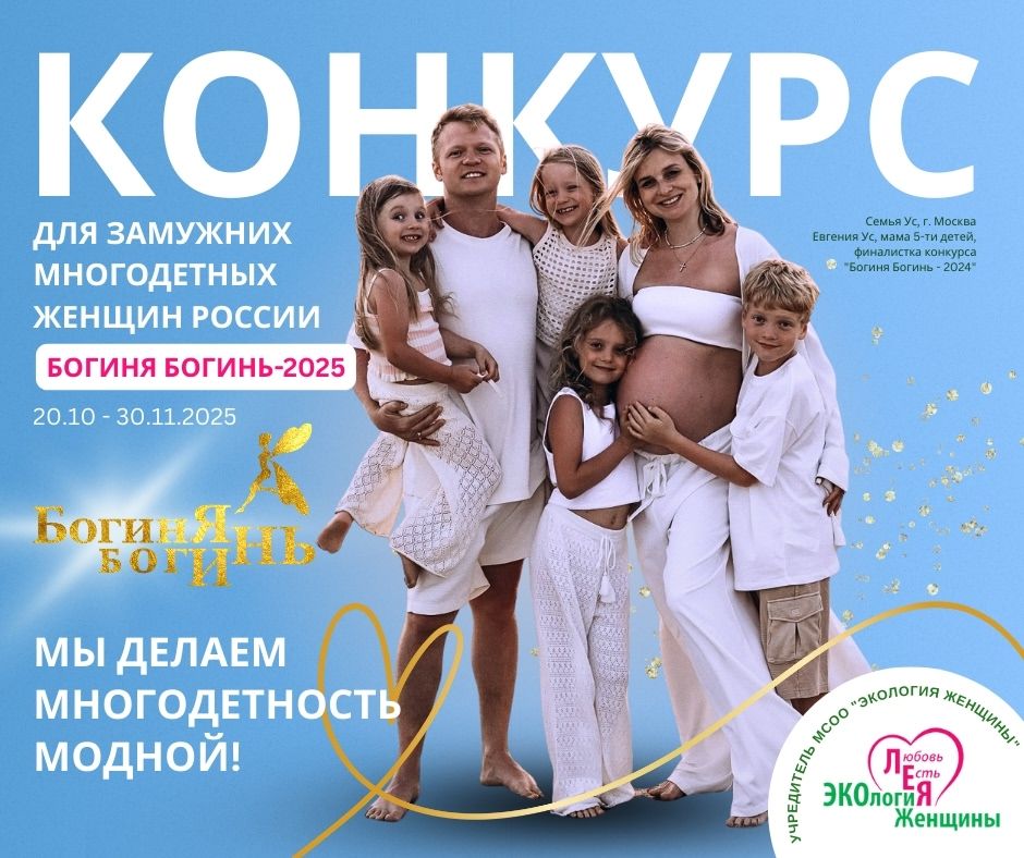 И вот, в 9-й раз, объявляется СТАРТ БЕСПЛАТНОГО КОНКУРСА для замужних многодетных женщин России #БогиняБогинь2025