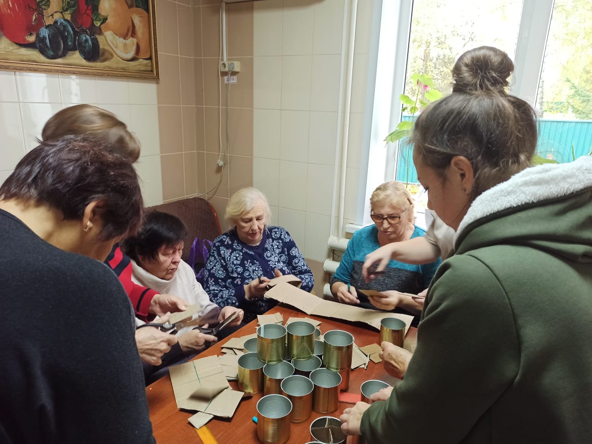 Сегодня на базе Центра социального обслуживания населения Знаменского района получатели социальных услуг отделения социальной реабилитации и активного долголетия, "серебряные" волонтеры вновь изготовили партию окопных свечей для наших солдат на передовой.