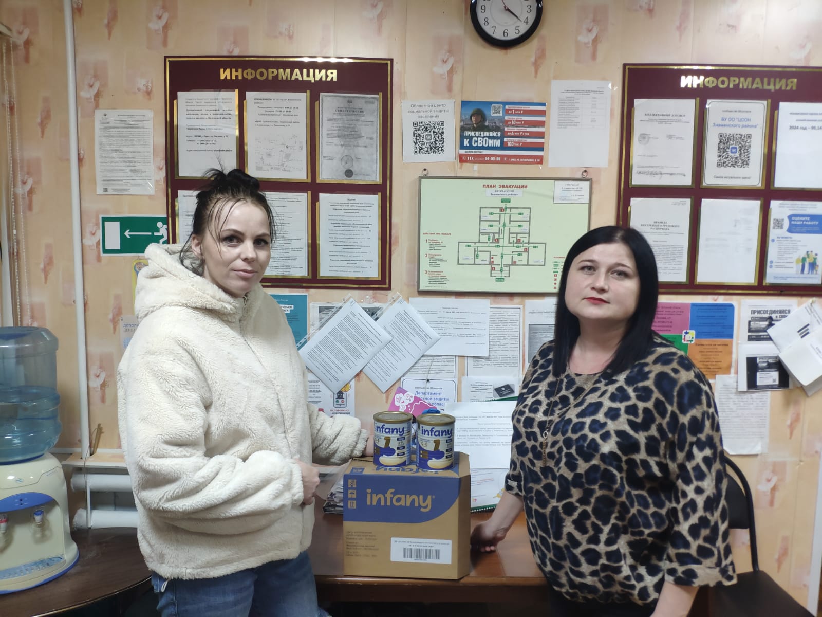 Инициатива направлена на поддержку материнства и детства. Центр социального обслуживания населения Знаменского района присоединился к участию в данной акции: бесплатно передаёт сухую молочную смесь многодетным и малообеспеченным семьям, семьям с детьми – инвалидами, семьям, находящимся в социальном опасном положении (СОП), молодым семьям с детьми до 3-х лет.