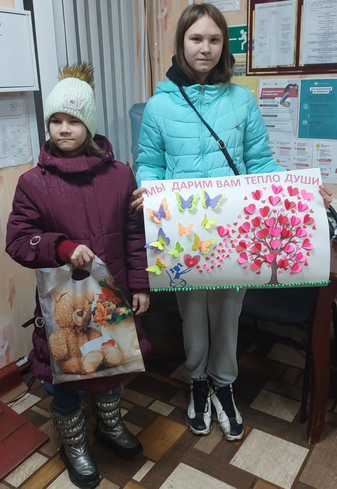 Специалисты центра посетили детей на дому, где было организованно творческое занятие, в ходе которого ребята приклеивали лепестки в виде сердечек на плакат, который символизировал тепло и душевную связь между детьми и нашим обществом. Каждому ребенку были вручены сувениры.