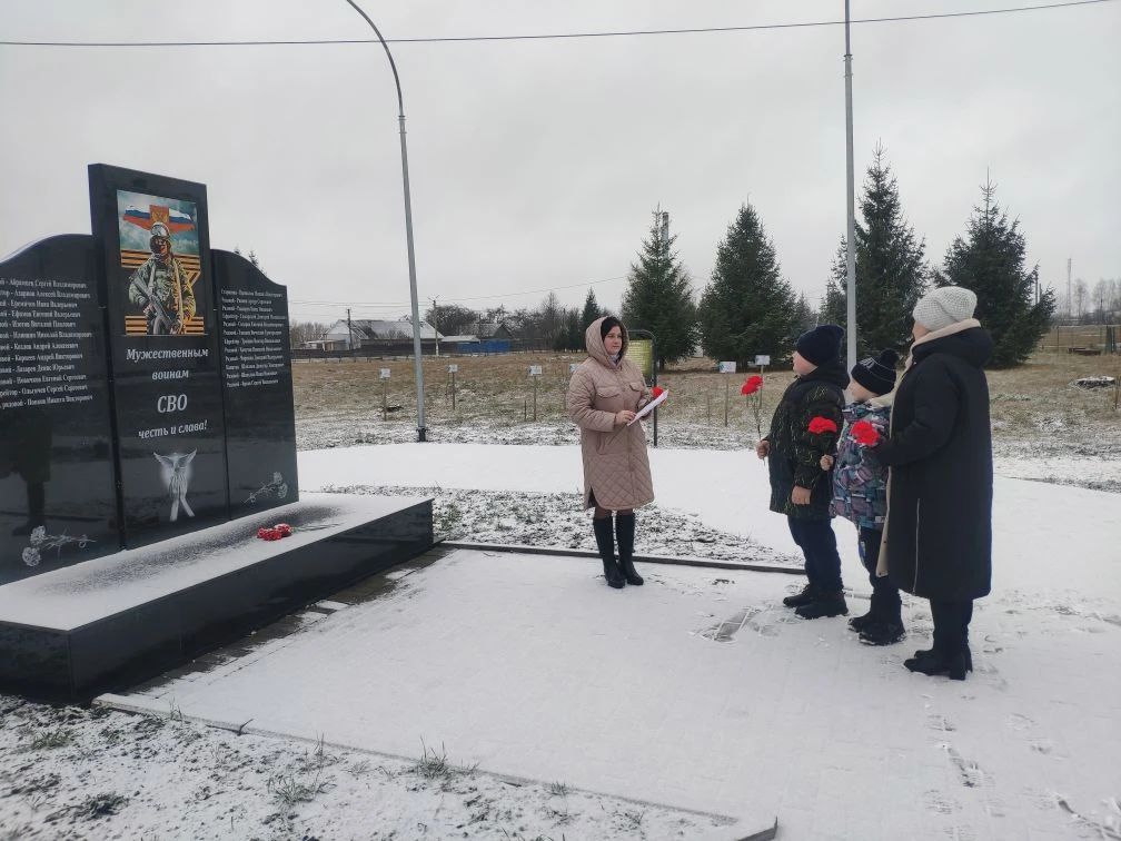 Патриотический час «Герои Родины моей» с возложением цветов на памятник участникам СВО ко Дню Героев Отечества.