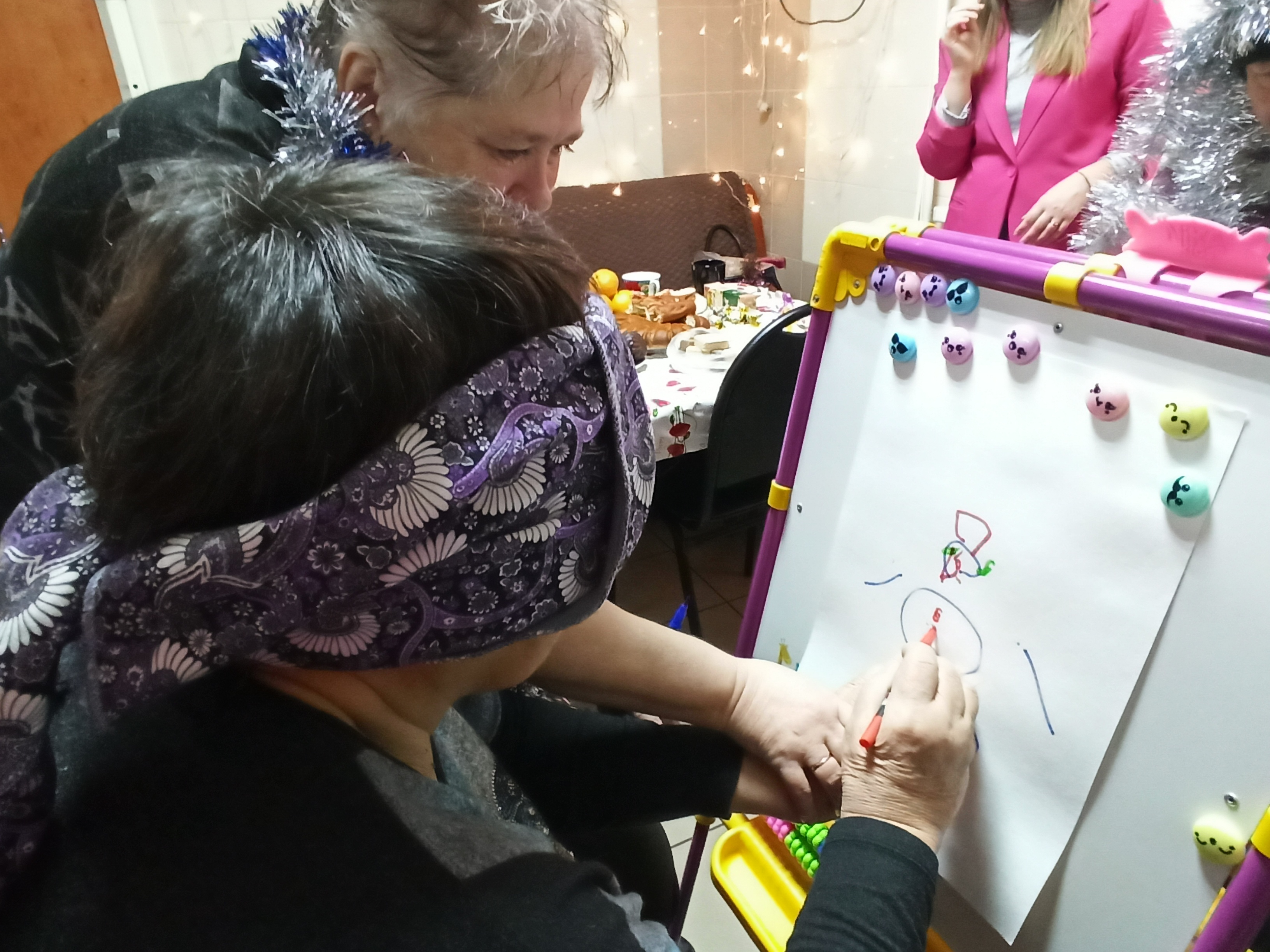 В начале мероприятия специалисты тепло поздравили собравшихся с новым годом и организовали интересную программу с веселыми играми, забавными конкурсами, зимними загадками, пением любимых новогодних песен, и конечно же чаепитие.