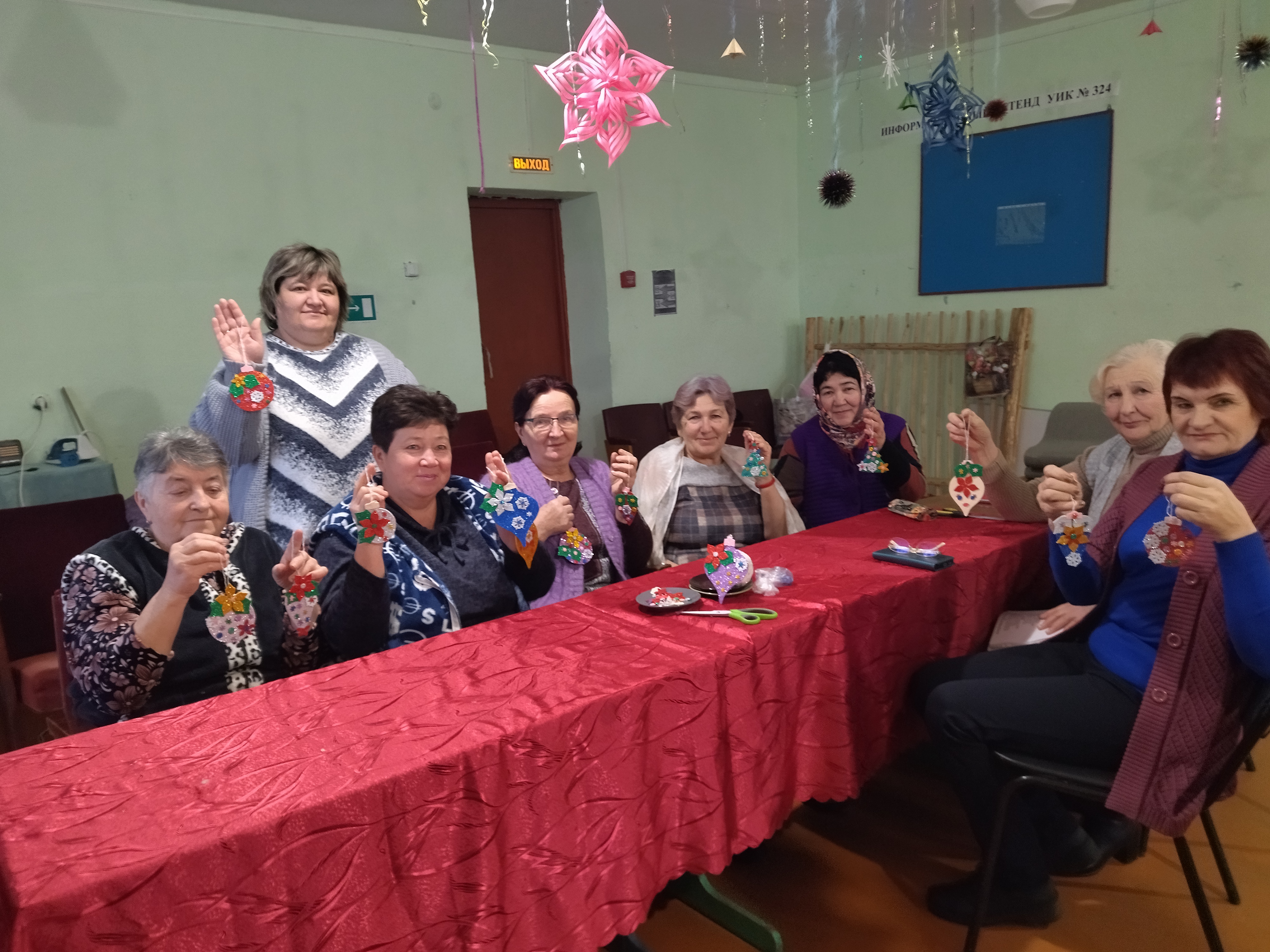 Для присутствующих специалисты Центра социального обслуживания населения Знаменского района организовали интересную программу с весёлыми играми, звонкими песнями и провели мастер - класс по изготовлению новогодних игрушек.