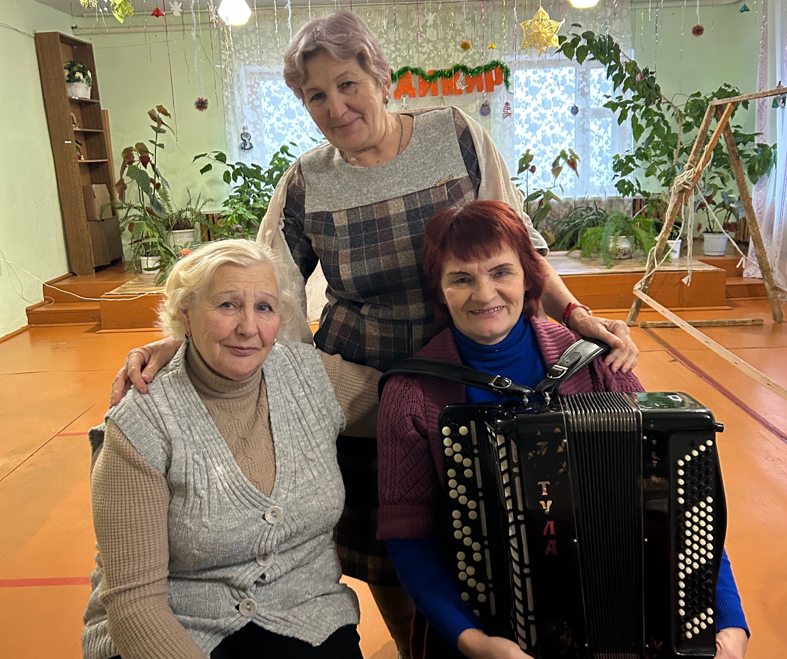 Участники мероприятия активно принимали участие во всех забавах, дружно отвечали на вопросы новогодней викторины, отгадывали зимние загадки и приняли участие в сценке «Репка». В течение всего мероприятия звучали песни под баян. Встреча завершилась ароматным чаям со сладостями.