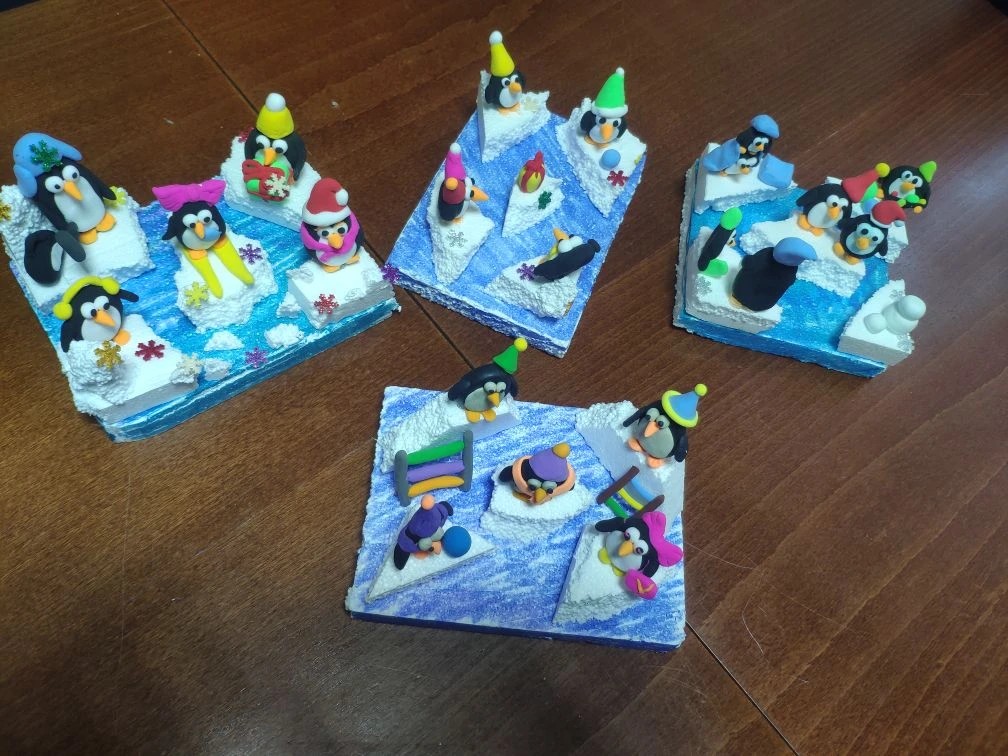 Это была не просто творческая встреча, а настоящее погружение в атмосферу полных ярких красок и тепла детских улыбок. Наши юные художники учились создавать яркие и трогательные фигурки пингвинов, используя воздушный разноцветный пластилин, и разные декоративные материалы. Изготовление маленькой ледяной панорамы превратилось в увлекательную игру, где каждый мог выразить себя через форму, цвета и детали.