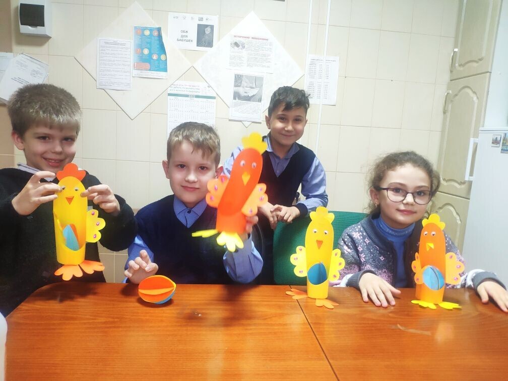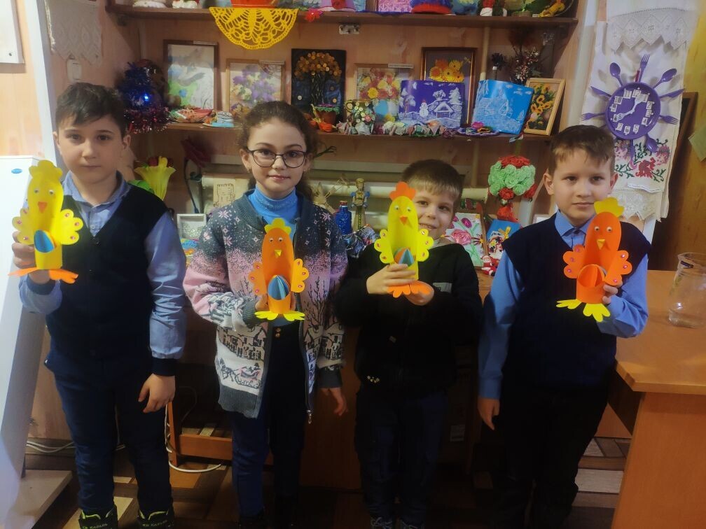 На нашем занятии ребята с интересом отнеслись к изготовлению «Курочки Ряба», проявив свою старательность и воображение. Эта поделка займёт достойное место для украшения праздничного стола.