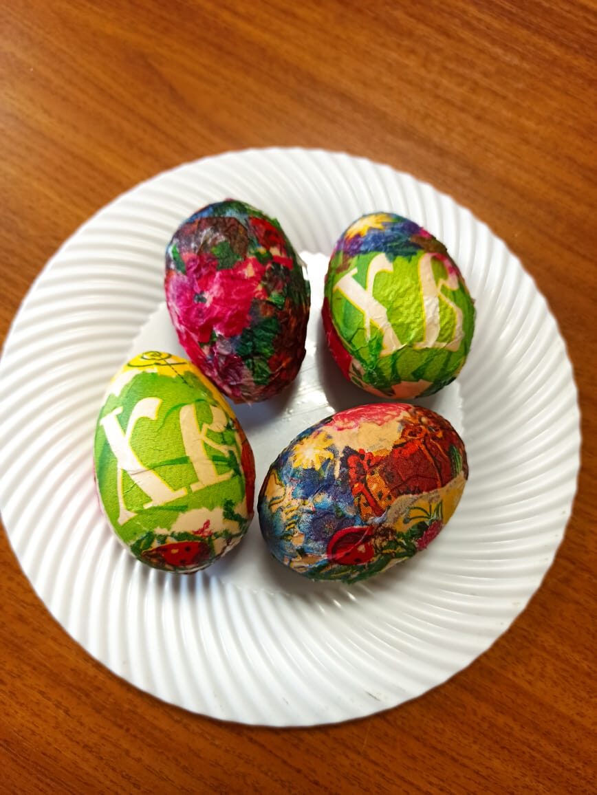 Этой прекрасной традиции было посвящено сегодняшнее занятие с детьми. Под руководством Ольги Кузнецовой ребята с большим удовольствием, проявив свою фантазию, декорировали пасхальные яица обыкновенными бумажными салфетками. Но это не помешало превратить пасхальные яйца в своего рода "произведения искусства". Вот какая красота у нас получилась!