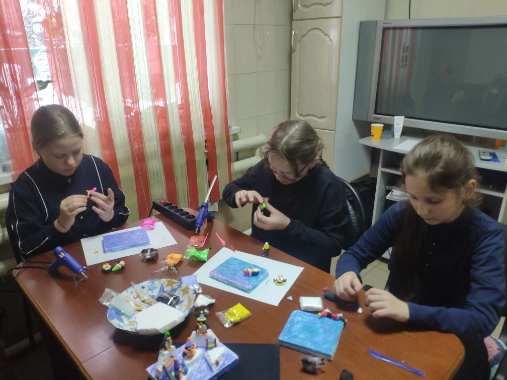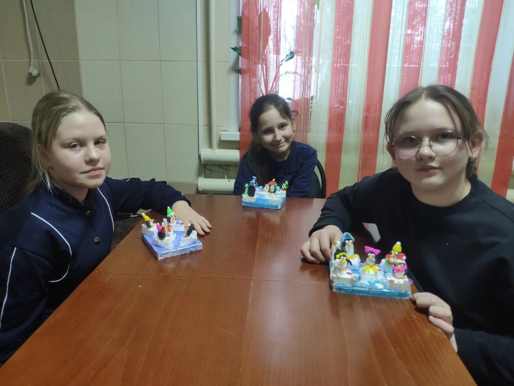 Это была не просто творческая встреча, а настоящее погружение в атмосферу полных ярких красок и тепла детских улыбок. Наши юные художники учились создавать яркие и трогательные фигурки пингвинов, используя воздушный разноцветный пластилин, и разные декоративные материалы. Изготовление маленькой ледяной панорамы превратилось в увлекательную игру, где каждый мог выразить себя через форму, цвета и детали.