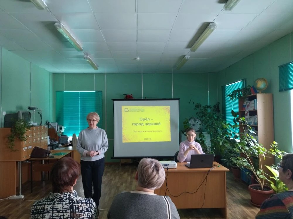 Сегодня в Межпоселенческой центральной библиотеки Знаменского района при содействии Центра социального обслуживания населения состоялась встреча с библиотекарями "Орловской областной научной универсальная публичной библиотеки имени И.А. Бунина". Специалисты отдела краеведческих документов Марина Викторовна Игнатова и Анна Александровна Абрамова познакомили присутствующих с некоторыми православными храмами города Орла, которые существуют сегодня.
