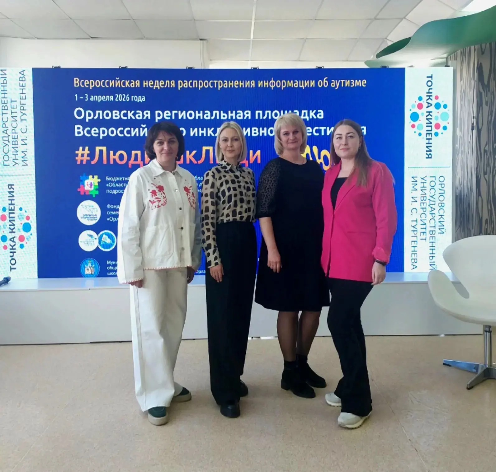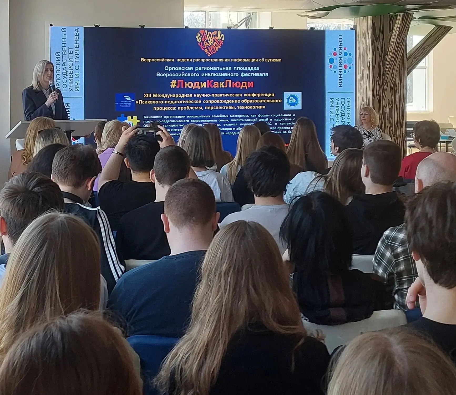 Конференция, организованная БУ ОО "Областной реабилитационный центр для детей и подростков с ограниченными возможностями", прошла в "Точке кипения" ОГУ им. И.С.Тургенева. Она была приурочена к Всероссийской неделе распространения информации об аутизме и посвящена Всероссийскому фестивалю #ЛюдиКакЛюди, что подчеркивает ее особую актуальность и социальную значимость.